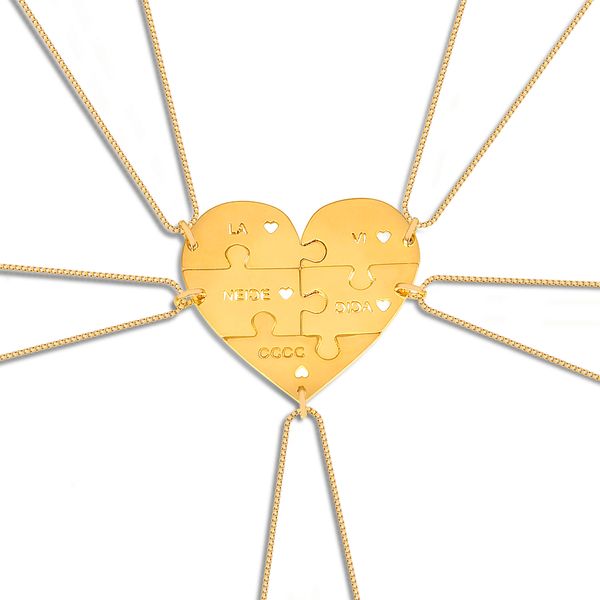 Conjunto de colar personalizado quebra-cabeça em formato de coração folheado (Escolher o banho) - Francisca Joias