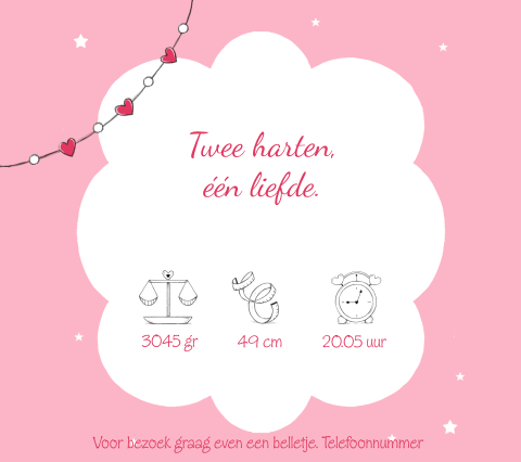 Op een roze wolk met regen van hartjes geboorte | Kaartje2go