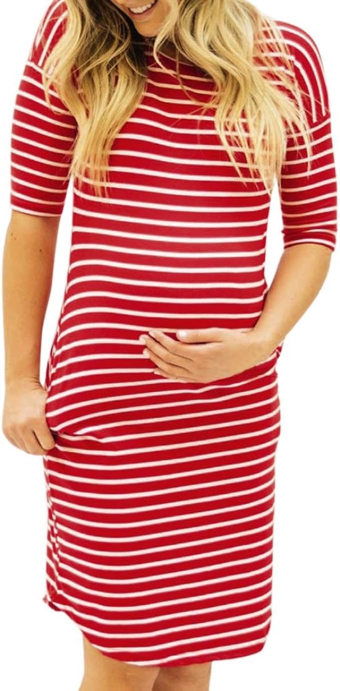 OHQ Couleur Pure Manches Courtes Col Rond Femmes Enceintes Jupe ...