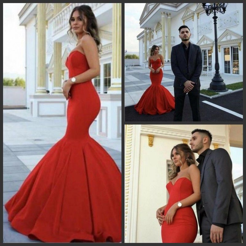 Acheter Robes De Soirée Sirène Chérie Rouge Chic Satin Zipper ...